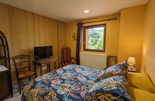 Access to the owners' 1,800 m² garden with garden furniture, lounge chairs, and a gas barbecue. The breakfast room is located on the ground floor. The air-conditioned room is located on the first floor of the owners' house. It features a double bed (140x190 cm). There is a TV. The private bathroom has a shower stall, a sink, a heated towel rail, and a hairdryer. There is a toilet. A courtesy tray with an electric kettle, tea, and coffee is provided.