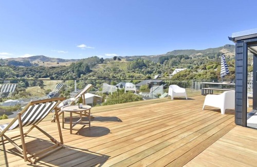 Outdoor Oasis: Step outside onto the expansive wrap-around deck and immerse yourself in the breathtaking beauty of Akaroa. Whether you’re sipping your morning coffee as the sun rises or unwinding with a glass of wine as the stars twinkle above, the deck offers a serene setting to soak in the natural surroundings.