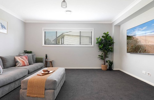 Step into comfort at Akuna Retreat, where space and modern convenience meet. This spacious two-storey home boasts five bedrooms, multiple living areas across both levels, and ducted reverse-cycle air conditioning to keep everyone comfortable year-round. Enjoy movie nights in the media room with smart TVs and WiFi or set up in the laptop-friendly workspace if you need to catch up on tasks. The fully equipped chef’s kitchen features a dishwasher, microwave, and Nespresso coffee machine, making meal preparation a breeze for larger groups or families.