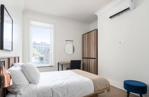 Opal Boutique Hotel is a 21 hotel room establishment located in the heart of Quartier des Spectacles and two steps from the well-known Sainte-Catherine street. Berri-UQAM metro station is two minutes only from the hotel. You will enjoy the comfort of our rooms equipped with a kitchenette and a Nespresso coffee machine as well as access to different services such as free Wifi and self check-in. No elevator in the building.