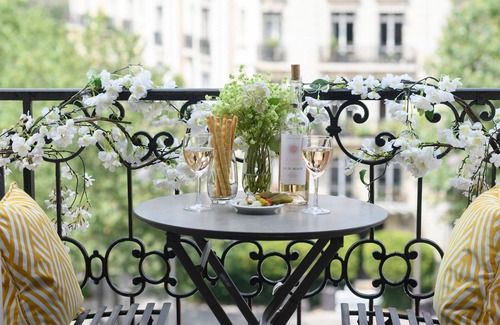 The wrap-around balcony is unique; it features seven sets of French doors that open onto your own view of Paris and the Eiffel Tower. On sunny days and warm evenings, you’ll enjoy sitting at the bistro table over breakfast, lunch and aperitifs!