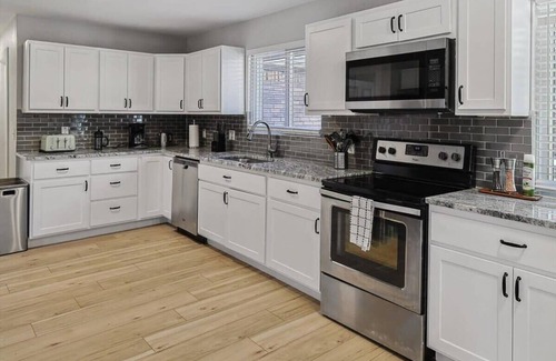 Welcome to your relaxing getaway in Plano! As you step into your temporary home, you’ll be in awe as you take in the HUGE open concept space that’s bright, airy, and has great flow throughout. The modern eclectic décor consists of funky wall art and stylish yet comfy furniture. The luxe finishes are just the icing on the cake. You’ll easily be able to relax in the luxury of this home.