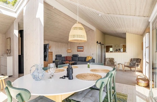 Just a few steps away from the child-friendly beach, you can enjoy pure relaxation in this holiday home. The house impresses with its cosy furnishings and well thought-out design. The open-plan living area invites you to linger with its comfortable sofas and wood-burning stove. Enjoy the panoramic view of the water through the large windows while you prepare your meals in the kitchen. The adjoining conservatory is a highlight of the house and offers you a sheltered spot with a view at any time of year.