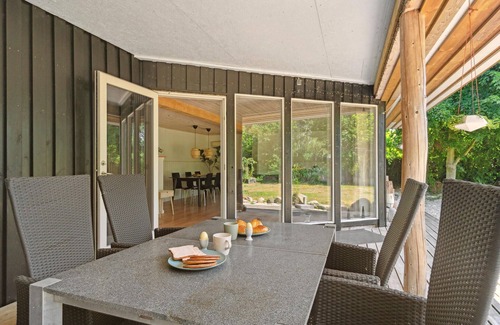 Spend a quiet and relaxing vacation with your family in this inviting vacation home. The brightly decorated and well-equipped rooms offer you comfort and cozy evenings on the sofa. Listen to the crackling of the fireplace and play board games or host a cookout in the modern kitchen. Enjoy your morning coffee on the covered terrace and then watch your children play on the lawn.