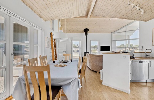 Welcome to this beautiful holiday home with many interesting details. Located in the very north of the southern Danish island of Alsen, it offers the ideal basis for a relaxing, peaceful holiday with the whole family. Get the day off to a relaxed start with breakfast and your first cup of coffee of the day. You can also play fun board and card games or paint colourful holiday pictures at the cosy dining table between meals. The beautiful, partially covered terraces surrounding the house each offer different views of both the beautiful surrounding landscape and the sea. Enjoy the fresh air to the full here and make plans for your day's holiday. But before you set off, you can also relax in the whirlpool.