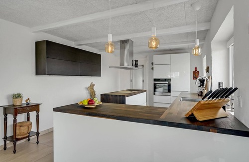 In the former fishing village of Agger, close to the North Sea coast, this spacious vacation home awaits you. The modern and tasteful interior together with the comfortable equipment creates the ideal conditions for a successful vacation. Look forward to many social hours in the bright living room, where you can devote yourself to vacation reading or play a round of table soccer.