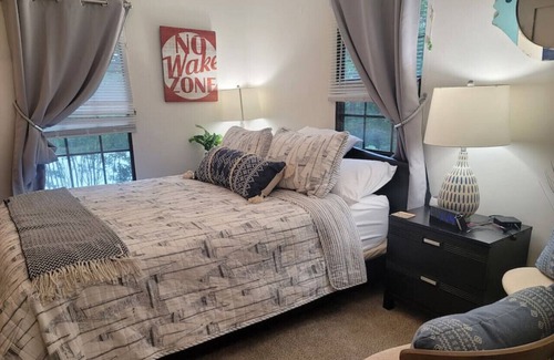 Welcome to your quiet Lake Lanier getaway at "Casa Delle Rane!" A Spacious 2 bedroom, 2 bath private cottage in Gainesville, Georgia. Perfect for families, couples or friends who are ready to have some fun at the lake! Amazing attention to detail with prime amenities, including a deep water boat dock, firepit and beautiful scenery. Located on a quiet street, but only minutes away from restaurants and shopping. Enjoy relaxing on the large deck, creating memories with your loved ones.