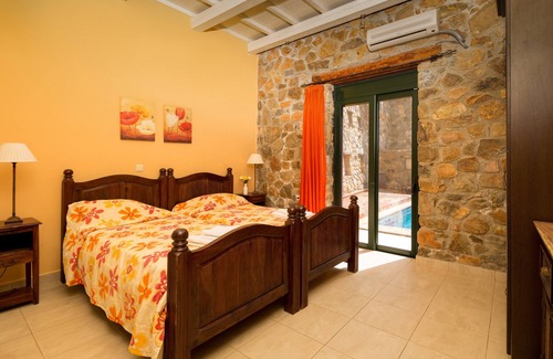 Artemis villa is part of a villa complex (Amygdalia villas) at the sides of the hills in Livadia village just 300 meters from the sea overlooking the endless blue of the Mediterranean Sea at the island of Crete, Chania. The unique construction of stone-built villa of an architecture design that dates a century ago located in the rugged Cretan nature in relation to the blue horizon of the Mediterranean Sea.