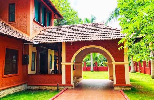 Providing a terrace, Ambara Kovilakam Private Pool Villa by Travent Mug offers accommodations in Rāmanagaram. This property offers access to a balcony, free private parking, and free Wifi. The villa features an outdoor fireplace and a 24-hour front desk. The air-conditioned villa consists of 3 bedrooms, a living room, a fully equipped kitchen with an oven and a kettle, and 5 bathrooms with a bath and free toiletries. Guests can take in the ambience of the surroundings from an outdoor dining area or keep warm by the fireplace on colder days. The villa offers bed linen, towels, and daily room service. Breakfast is available daily, and includes buffet, à la carte and full English/Irish options. Guests can eat at the on-site family-friendly restaurant, which is open for dinner, lunch, and high tea. For guests with children, the villa provides kids pool, an indoor play area, and outdoor play equipment. Guests can enjoy the outdoor swimming pool and garden at Ambara Kovilakam Private Pool Villa by Travent Mug. Wonderla is 21 miles from the accommodation, while ISKCON Hare Krishna Temple is 30 miles away. The nearest airport is Kempegowda International Airport, 55 miles from Ambara Kovilakam Private Pool Villa by Travent Mug.