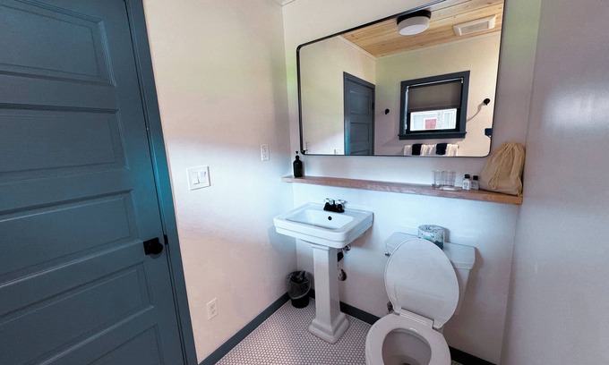 Welcome to Amber Cottage! This Junior King room features a king bed, bathroom with a large walk in shower and private carport. Amber Cottage can accommodate up to 2 guests.Amenities include: 250 sq. ft, King Bed, extra small mini refrigerator (15 L) Coffee Maker & Electric Kettle, Premium Coffee, Tea & Cocoa, Bathroom with Rainfall Shower, Flat Screen Television, Mini-Split Heat & Air Conditioning, BlueAir Air Purifier, and Private Carport for Midsize Vehicle.