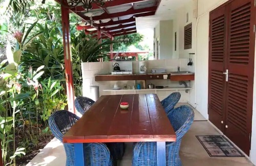 Fantastic “Meimei” apartment for 2-4 persons, 2 bedrooms or 1 bedroom and 1 office, outdoor kitchen on private terrace, air conditioning, hot water and refrigerator. Large swimming pool with children's pool, porch with large kitchen and BBQ. Mini resort with 4 apartments, 15 minutes to town/beach. Our rate includes use of utilities, air conditioning, cleaning and tax.