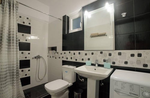 Bed linen, bath and facial towels and beach towels are available, changed every fourth day of your stay. There is a bathroom with shower and hot water 24 hours a day. In the bathroom there are all necessary accessories such as shampoo, shower gel, toothpaste, sponges