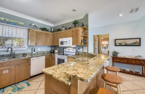 ANGEL WING is a charming home that perfectly combines open living spaces with a sense of privacy. Relax in the shade of the covered deck, lounge in the sunshine, or enjoy a glass of wine in the screened porch. All of the decks offer the perfect setting for soaking in the sights and sounds of the Gulf!