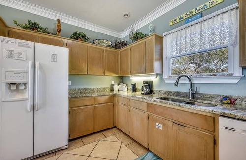 AMENITIES:Multiple TVs, DVD, CD player/stereo, master suite with private deck, sun deck, covered deck, screened porch, enclosed hot and cold outdoor shower, Jacuzzi tub, charcoal grill, fish cleaning table with sink, under house concrete parking, and walking distance to Bob Sikes Cut. Washer and Dryer.