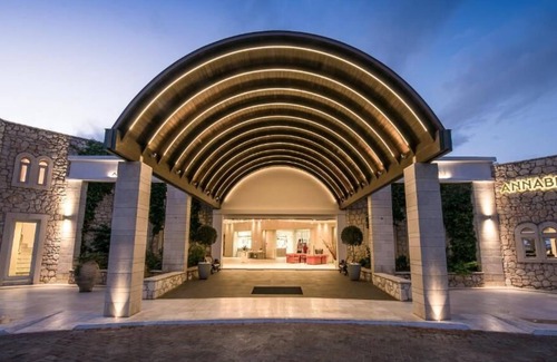 Annabelle Beach Resort is a 5 star All inclusive hotel, located in Anissaras, very close to the popular and lively resort of Hersonissos and 22 km from the International Airport of Heraklion. The hotel is a stylish complex of bungalows designed in the Aegean architectural style, set in extensive landscaped grounds and beautiful gardens offering an exotic atmosphere, famous for its own section of white sandy/pebble beach, which has repeatedly awarded with the European Blue Flag award for its crystal clear water and cleanliness.