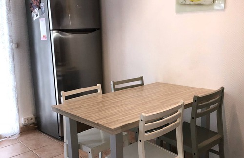 1) APARTMENT FURNISHED TOURISM 4 STARS: ground garden in villa 'la meridiane' district ROI SOLEIL. Secure private parking space with automatic door remote control, very quiet. 3 orientations. 2 bedrooms. Kitchen and bathroom, bright living room. Superb kitchen equipped with electric oven, microwave, hood, dishwasher, kettle, coffee makers, toaster, fridge, freezer, hob 2 burners, crockery complete drying, washing machine, dryer,
