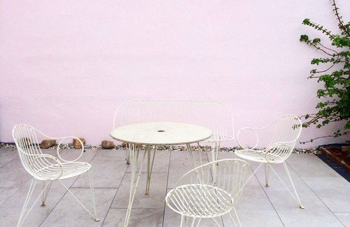 The Apfelgarten holiday apartment is on the ground floor of house No.15 and has a modern design (mid-century style with vintage pieces from the 50s and 60s). With 2 double rooms, 2 bathrooms and a single room, the apartment offers 120 square meters of space for up to 5 people.