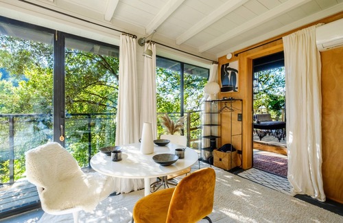 The ecoloft is situated on a permaculture farm with animals and features a natural swimming pool. Additionally, there is a tennis court within a 15-minute walking distance from the property.