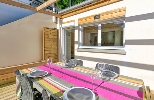 You have a private outdoor area with an open-air terrace. You also have access to a shared outdoor space with a barbecue. The property is ideally located near the beach, with bus line 13 at the doorstep, a nearby cycle path, and the wild beach of Sainte-Marguerite just 800 metres away.