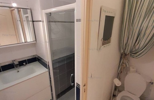 Air-conditioned living room with an equipped kitchen : double sofa bed, TV, Internet, safe box,microwave, dishwasher, big fridge/freezer, electric hob, coffee maker Senseo.