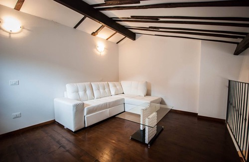 The apartment has 4 double bedrooms, one living room with one single sofa bed, a small garret with a sofa bed for one person, 3 bathrooms and a kitchen with a sofa bed inside, for one person. Every detail has been well-refined and you’ll find also high quality handcrafted elements.