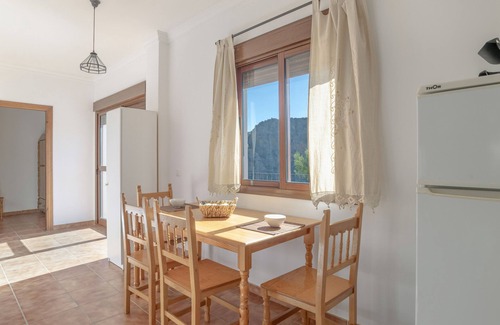 Apartment Apartamentos Sierra Del Hacho Ático in Montejaque provides 90 sqm of space for up to 4 guests. You have 2 bedrooms and 1 bathroom during your stay. A private well-equipped kitchen is available for your use. Amenities include air conditioning, TV, private uncovered terrace, washer, and mountain view. The apartment is located on the 2nd floor from Calle Imigrantes or 4th floor from Avenida Andalucia. Crib and highchair are available upon request but you need to check availability with the owner beforehand. Free street parking is usually available. Events are not allowed on the property.
