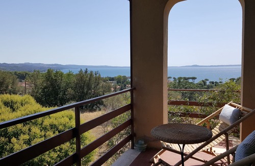 Magnificent view of the lake and the Bolsena Castle. Very bright, independent apartment, surrounded by the countryside, over 80 sqm with garden, located on the first floor, accessible by a staircase, of a terraced house: composed of 1 living room, 1 kitchenette / kitchenette, 2 bedrooms, 1 bathroom, for a total of 4 beds (1 double bed, 1 bunk bed, availability of a double sofa bed on request) 2 terraces, with the possibility to have lunch and dinner under the pergola of the vegetable garden. Fully functional fireplace, TV, with DVD, stereo, washing machine. Dishes, linens, blankets and towels. Availability of consulting books for excursions and local knowledge. E 'was prepared by the owners a specific booklet for consultation, in Italian-English, with suggestions for day trips / visits to places of natural and archaeological interest and guidance on typical local products of the area. The historic town center is a 7-minute walk as well as the nearest supermarket. Pets are accepted. For internet access a "poket wi-fi" is available, to be returned at the end of the stay. From 13.07.2017 the Municipality of Bolsena applies a tourist tax, for the first 7 days, of € 1 per person per day, which must be paid in cash at the time of check-in; among the exempt categories, even children under 10 years.