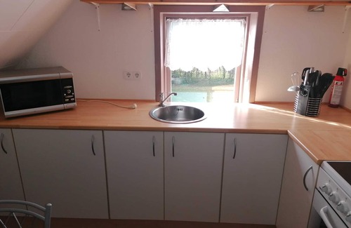Denmark is a wonderful holiday country. The most beautiful is Han Herred, a stretch of land between the Limfjord and the North Sea. The outing with the towering sky, the magnificent wild undisturbed nature in both storm and still weather. Experience this area on foot, by bike, in the car or by boat, on the surfboard or with water skiing. Enjoy a variety of experiences and always feel welcome. Whether it's the fishing enthusiast, the birdwatcher, the nature lover or the mushroom seeker, everyone has ample opportunities to freely develop and pursue and enjoy their hobbies in peace and quiet. You will always find a nice spot all to yourself. An unforgettable experience. All this you can in peace during a stay with us in the cozy, rural 80 sqm apartment on the upper floor (a bit steeper stairs, because Danish standard) of our house, with fireplace and a view of the fields, explore. The house is surrounded by approximately 4. 800 m² of private land surrounded by meadows, shrubs and trees. You will receive the keys personally from us upon your arrival. If you want to bring bicycles or similar sports equipment, you can use a part of our garage at any time for accommodation. You will receive an access chip upon arrival. Our cozy and bright furnished 80 m² apartment for 3 people is integrated into a beautiful countryside 5 km away the small village Fjerritslev with 3. 500 inhabitants. The accommodation can be max. Accommodate 3 adults or 2 adults and 1 child (up to 6 years). The 3. Person can sleep on a fold out chair. The accommodation is located on the first floor of our property "Skjærnsøde" built in 1916, which over the past 13 years has been refurbished both externally and internally. The apartment is divided into a living room, a bedroom, a kitchen and a bathroom. The individual rooms are tastefully decorated and modern. All floors are equipped with laminate, the entrance area and the bathroom with tiles. In addition, all rooms have a nice and bright coat of paint. Out of respect for all guests smoking in the apartment is not allowed. In the 40 m² living space you have two modern and comfortable sofas, a coffee table, a 39 "LED color TV and a DVD player. German television reception is via satellite (ASTRA). Furthermore, you will find a stereo with radio tuner and CD player. In the living room cabinet you will find utensils for daily needs and information brochures. For leisurely hours, you can of course also use the existing stove, which creates an atmospheric atmosphere. You can buy wood from the merchant or the hardware store in Fjerritslev. This room can be heated by this oven. The bedroom is 17 m² and equipped with a king-size double bed (200 cm x 200 cm, separate mattresses in the format 100 cm x 200 cm), a fold-out chair (70 cm x 200 cm) and two dressers. This room will be heated by the central heating during the heating season (15. 10. - 30. 04.). The fully equipped kitchen offers a 4 * refrigerator with freezer, an electric cooker with ceramic hob, a microwave, a coffee maker, a kettle and a toaster / toaster. Otherwise, the kitchen is equipped with all the necessary cooking utensils. Furthermore, there is a dining area for 4 people. We provide tea towels, sponge and detergent along with kitchen roll as a starter set. Spices for cooking are also available. This room is also heated by the central heating. Also, the bathroom is functional with bath, toilet, sink and closet space. A hair dryer is available. As initial equipment we have prepared hand soap and toilet paper. This room has an electric heater. Wi-Fi (secured) is available free of charge in all rooms. The landlord lives on the ground floor with a separate entrance (left side), the terrace with stone garden grill and four seats is available for your sole use. Furthermore, there is a parking lot directly on the private property. Fixed and optional utilities: Final cleaning: Mandatory per stay: 250, - DKK (33, - €) (payment on the spot) Linen package on request 75, - DKK (10, - €) per person and first occupancy (payment on the spot) Bed linen on Wish 45, - DKK (6, - €) per person and first occupancy (payment on the spot) Towels on request DKK 30 (4, - €) per package and first occupancy (payment on the spot) Energy costs: Central heating, electricity, water included tourist tax : Unless otherwise agreed, the arrival time is 15.00 and departure time is 10.00. In the next town Fjerritslev you can do your shopping. Here you can find the discounters Aldi, Netto, Meny and Super Brugsen. We are already looking forward to welcoming you as a guest!