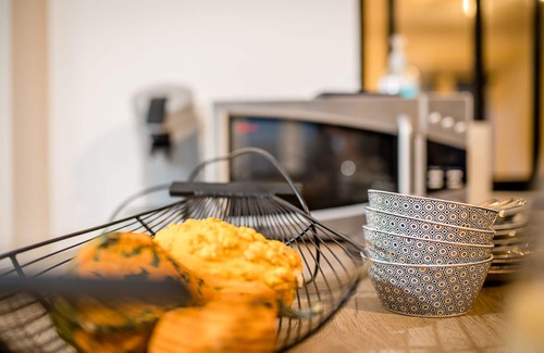 Prepare a home-cooked meal in the kitchen, complete with an oven, a stovetop, and a refrigerator, as well as a coffee maker, an electric kettle, and a microwave. Bathroom amenities include a hair dryer, towels, and toilet paper. And there's access to laundry facilities, so you can even pack a bit lighter. Other amenities include a living room, bed sheets, and heating.