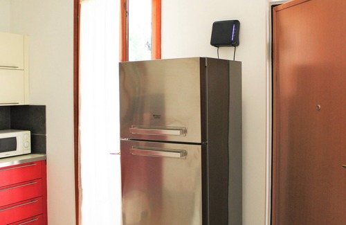 La cucina è completamente attrezzata con tutto il necessario per cucinare in autonomia: piano cottura, forno, frigorifero, lavastoviglie, bollitore, macchina del caffè e stoviglie. È pensata per chi desidera sentirsi a casa anche in vacanza, potendo preparare colazioni tranquille o cene in compagnia. Si può anche fare un aperitivo o cenare sul terrazzo esterno.