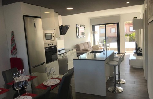 The apartment in San Pedro del Pinatar has 2 bedrooms and has capacity for 4 people.The apartment is comfortable, is fully-equiped, and is 80 m².The property is located 900 m from the sand beach, 2 km from dos mares supermarket, 6 km from romero golf golf course, 40 km from murcia airport, 65 km from alicante airport. The house is situated in a quiet neighborhood in a residential complex.The accommodation is equipped with the following items: garden furniture, 20 m² terrace, washing machine, iron, internet (Wi-Fi), hair dryer, balcony, heat pump, air conditioning throughout the house, communal swimming pool, 1 TV.In the induction open plan kitchen, refrigerator, microwave, oven, freezer, dishwasher, dishes/cutlery, kitchen utensils and coffee machine are provided.