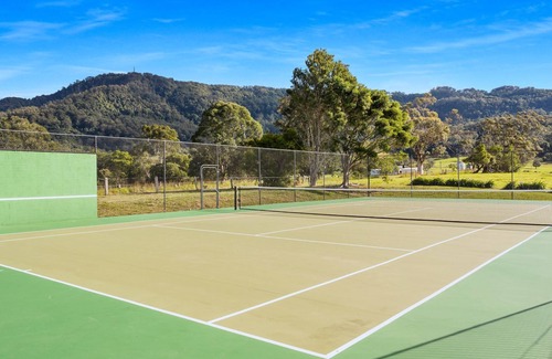 On-site, you'll find an inviting inground pool, a private tennis court, and the comfort of ducted air-conditioning and ceiling fans. For cooler evenings, gather around the open wood fire in the spacious lounge that overlooks the lush gardens and paddock. The country-style kitchen is well-equipped and seamlessly connects to an inviting dining area, perfect for hosting leisurely lunches with friends and family. As the day fades into evening, enjoy sunset drinks by the pool on the wicker lounge, all while admiring the breathtaking views up to Berry Mountain.