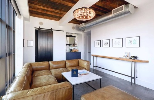 Wythe Hotel is a destination for design lovers and trendsetters in the vibrant Williamsburg scene. The North 7th Loft features tall ceilings, large arched windows, and a refined industrial layout for an elevated Brooklyn stay.