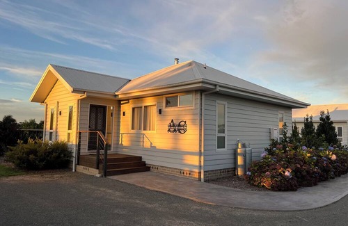 The cottage comprises a spacious combined kitchen living and dining area as well as two bedrooms, each with its own ensuite. Bedroom one has a queen bed, sitting chair and walk in robe. The second bedroom has two single beds and a built-in robe.