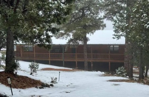 Arrow’s Haven, a perfect place to have a relaxing vacation. Beautiful views of Capitan mountains, great location in a quiet neighborhood. 3 Large bedrooms that each have its own bathroom. All one level and only one step to enter. Large covered decks in front and back are great to relax while enjoying the views and wildlife. The home has high speed Internet. The cabin is a short driving distance to Alto Lake and Ski Apache. The cabin DOES have central heat and air conditioning.