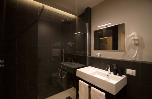 The large suite , equipped with lighting that enhances the architectural beauty of the frescoes , has a kitchen - with induction hob, microwave oven, refrigerator and all the necessary crockery - bathroom, a comfortable desk, a table with armchairs and enjoys a overlooking the main street of the city