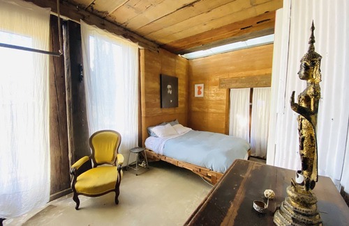 Rustic charming handmade house built with love from earth and reclaimed materials with my own two hands. Enjoy the quiet and tranquility of the natural surroundings be inspired by beautiful art and experience cooking from the garden and eating from handmade tableware.