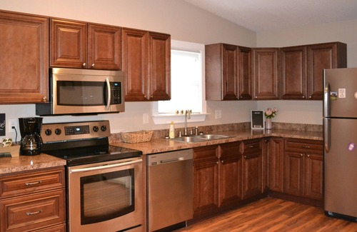 This is a beautiful, 720 square feet, new construction, above garage in law suite with a private entrance. One bedroom with a queen sized bed. Also a queen sized pull out sofa.It has a full kitchen and very large bathroom. Hardwood floors throughout. Nice big kitchen, living room, breakfast open area. Two driveway parking spots with additional street parking. Features cable TV and WIFI. Minutes from everything. Come visit Asheville and all it has to offer with the comfort and feel of being right at home!