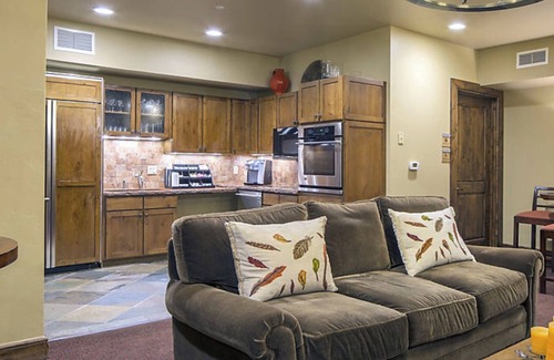 One-bedroom suite are perfect for smaller families. Quality features include slate entryways, granite counter tops, stainless steel appliances, gourmet kitchens and Alderwood cabinetry. Gas fireplaces, 42-inch high-definition flat screen TVs and jetted tubs add the final touches of comfort to the cozy suites. A lovely courtyard beside the year-round swimming pool(currently closed for unforeseen maintenance)and hot tub offers room to relax and rest after a day of warm-weather activity. After a day on the powdery slopes, enjoy the resort's cozy lounge area, which, like your suite and the rest of the resort, offers free WiFi service.