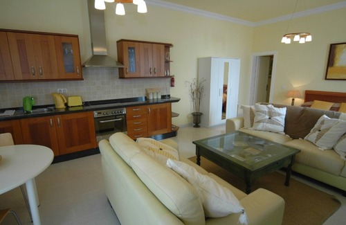 4. A self-contained studio apartment resides beneath the villa, furnished with a double bed, sofas, a kitchenette, and a bathroom. Please note that this is only available for those wishing to pay an additional supplement