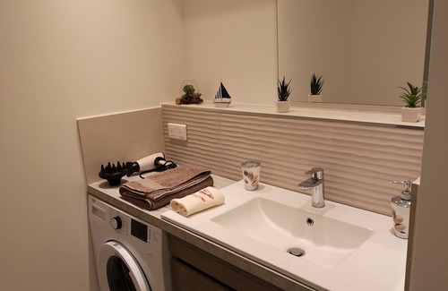 No need to pay for a restaurant every night, when you've got an oven, a stovetop, and a dishwasher on hand, as well as a microwave. Connect to the WiFi, or get cozy in front of the Smart TV. Bathroom amenities include a hair dryer, a bidet, and towels. And there's a washing machine, so you can even pack a bit lighter. Other amenities at this 1-bedroom, 2-bathroom rental include bed sheets, an ironing board, air conditioning, and heating.