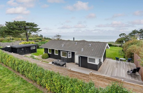 On Udsholt beach, west of Gilleleje, this charming holiday home welcomes you for an unforgettable holiday. The house is bright and tastefully furnished and offers you many practical amenities for a successful and relaxing holiday. Prepare delicious meals in the well-equipped, open-plan kitchen, which flows seamlessly into the living area. From here you can enjoy the breathtaking sea view, whether you're sharing a meal at the dining table or relaxing by the crackling fire in the fireplace.