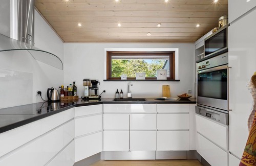 This cosy holiday home near Udsholt Beach in the north of the island of Zealand not only impresses with its comfortable interior, but also with its charming garden. The lovingly designed rooms create a pleasant atmosphere, ideal for cooking together or relaxing on the sofa. You can also use the cosy conservatory to discuss the day's plans over a cup of coffee. The in-house sauna and whirlpool provide soothing relaxation after an active day.