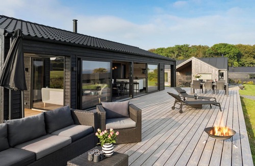Modern and elegant vacation home with a panoramic view of the Sandvig waters.