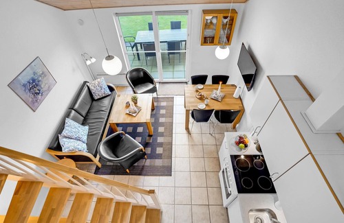 Spend a vacation here with your family that everyone will remember fondly later. Two bedrooms with double beds and 2 additional sleeping places in the living area offer space for up to 6 people. You will feel right at home in the cozy and brightly decorated rooms.