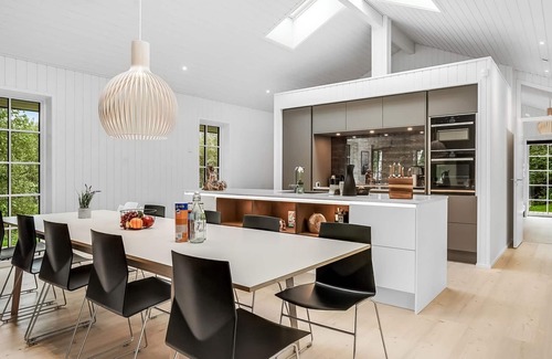 Single-family house, built in 2023. 350 m from the sea. Private: natural state property 2'376 m2. Barbecue. In the house: table football, washing machine, tumble dryer. Parking at the house. E-charging station. Grocery 6 km. The owner does not accept any youth groups.