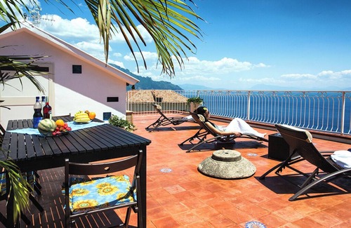 The terrace is 90 square meters and partially shaded by a large umbrella. From it, you can enjoy a beautiful view of the Amalfi Sea.