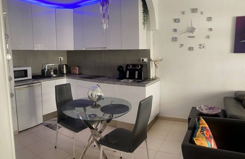 Welcome to your home away from home in sunny South Tenerife. This one-bedroom apartment is in the peaceful Balcón del Mar complex. Which is designed for those who want a quiet place to stay, relax, unwind, and enjoy the island at their own pace. The apartment is on the first floor and has lift access. The apartment has a romantic balcony with stunning ocean views – perfect for chilling out with a glass of wine in the evening or that first coffee to start the day. The apartment also has a modern living space with modern comforts. Including a Smart 55 inch screen TV and ceiling fans. The bedroom has comfortable beds with memory foam mattress’s and wardrobe space and drawers for you to store everything you may need. We also have a fully equipped kitchen with air fryer, hob, coffee machine, fridge and a freezer for those that want to stay in and enjoy a romantic home cooked meal. An iron, ironing board and hairdryer are also available for you to use. The apartment has a separate bathroom with a walk-in shower, toilet and bidet. Fresh towels are also provided. This beautiful complex has a large swimming pool surrounded by tropical gardens. It also has the added benefit of a pool bar, which serves a full range of drinks. And in addition, has a varied food menu. We are situated in Costa del Silencio, one of Tenerife’s most tranquil spots. And a short stroll to the promenade, local restaurants, and seaside cafés. We are just minutes from Las Galletas, a charming fishing village with a marina, beach and fresh seafood restaurants. Not to forget, the many independently owned shops. Which include a wide choice of boutique clothes shops. We have easy access to Los Cristianos and Las Américas for nightlife, shopping, and excursions. We are a one-minute walk away from the local bus stop for those that want to explore the other local tourist towns. Whether you’re enjoying the tranquil sea views from your balcony, enjoying a peaceful swim, shopping in Las Galletas or exploring Tenerife’s stunning coastline, this apartment is the perfect base for your couple’s holiday.Book now and treat yourself to the romantic break you deserve.