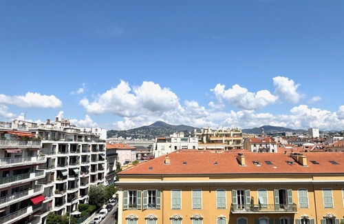 Located in an old building in the heart of the "Grimaldi / Promenade" district, this superb 2-room air-conditioned apartment, fully renovated, is a true comfort cocoon. With its 15m² terrace, ideal for romantic outdoor dinners, you will enjoy an unobstructed view of Nice's rooftops and surrounding hills. It is located just 5 minutes walk from the beach and a few steps from Mozart Square, in the lively and commercial Musicians district.