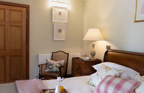 Amenities: Underfloor heating to wet room. Microwave, fridge, coffee machine, toaster, hairdryer. Smart TV, WiFi. Fuel and power inc. in rent. Bed linen and towels inc. in rent. White Company toiletries. Off-road parking upon the grass or in the Apple Barn. Communal lawn area with furniture, barbecue, bike storage and exclusive access to walled garden. Sorry, no pets and no smoking. Shop 1.8 miles, pub 0.5 miles, River Test 0.2 miles. Note: This is an adult only property, unless the booking is for a wedding; in this case, child facilities can be requested. Note: This is an interconnecting room with Ref: 1119045; please request this upon booking. Note: The wet room is fully accessible, suitable for those with limited mobility. Note: Continental breakfast hampers and meals can be pre-arranged at a fee. Note: Guests have access to on-site fishing, which must be pre-booked. Note: There is an on-site teamroom, open April to September, offering 20% discount for all guests. Note: Guests also have free access to Houghton Lodge Gardens, between 1st April and 30th September. Note: There is no oven or hob in the property. Note: There is a communal freezer for ice. Note: Free access to the walled garden in the evening. Note: Early morning riverside walk. Note: Close proximity to the local pub The Boot